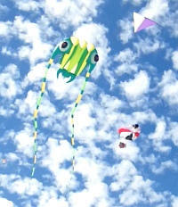 To the pilots' credit, the routine was not interrupted at all. Both kites completed the routine as if nothing had happened. Rough air tumbling across from the crowded jetty made things difficult for the kite team when flying low over the sand.