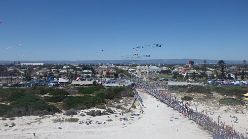 As usual, Semaphore Beach north of the jetty was reserved for registered fliers. The public made good use of the sand south of the jetty for flying smaller kites. Many of these kites had been bought just hours earlier from stalls on the foreshore.