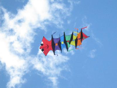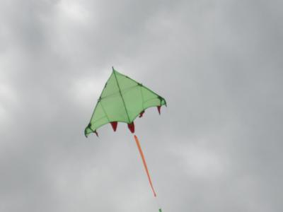 I tried out my trefoil kite. The design is a patented pattern from Helen Bushell, the colourful and buoyant elder stateswoman of Australian kiting. The wing tips were my addition to the original and seemed to work well even in the strong breeze. I will post some details on this site shortly.