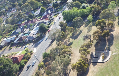 Giddy perspective from a swinging KAP rig at 250 feet altitudeThe hobby of aerial photography using kites got started in earnest around the mid-1980s. However, the very first examples of such photos date back to not long after photography itself was invented.
