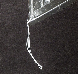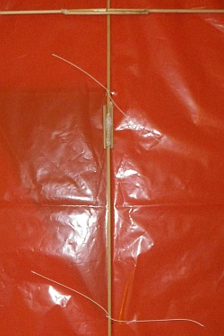 If the spar is not reinforced, this kite can't be pushed too hard in not-so-light winds before it starts to flap. Adding the extra skewer doesn't cure this behavior completely, but it does extend the range of wind speeds in which the kite will fly smoothly.