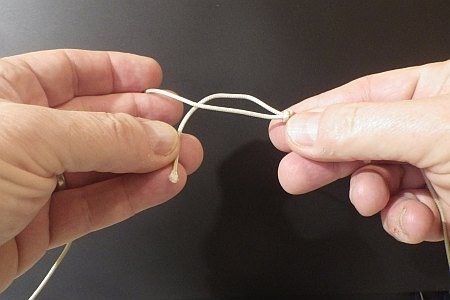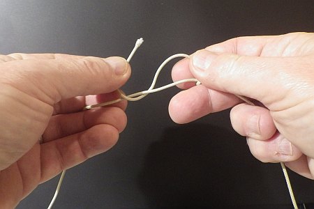 6. Pull tightThis is also referred to as a double overhand knot. The Multi-Strand Double Knot is rather handy for line mending, although my tests found that it weakened 20-pound line by about half. :-| For 100-pound line, it did better. Although ugly to look at, it's so easy to do, and that extra turn of line makes it slip-proof—unlike a simple overhand knot when connecting two lines!