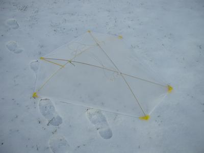 My second MBK kite and another very satisfying build-and-fly experience. With one more dowel than the diamond, the barn door needs just a little more wind to launch but is still a big easy flyer. Since they launch in very light winds, I can enjoy being out in the cold without much breeze while flying.