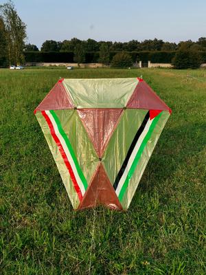 In a late afternoon, after the first test had failed due to the breakage of one of the rods (made of beech ..., finally a slight breeze on a beautiful sunny day ... run immediately to take the pieces and to assembly the kite!