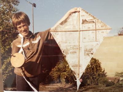 Good ole newspaper and sticks! These were my first successfully home-built kites. I would have been 10 or 11 years old.